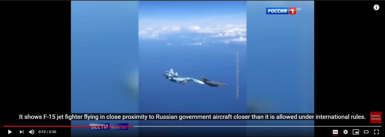 F-15 tersebut mendekati jet pemerintah Rusia yang membawa penumpang VIP yang tidak dikenal.